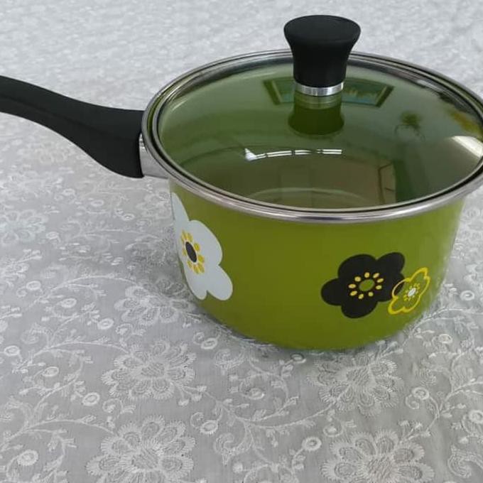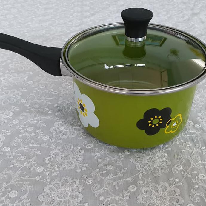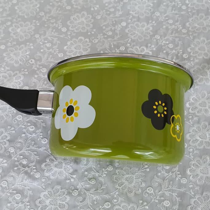 Panci Susu Enamel 18 Cm Bunga Sakura / Sauce Pan Enamel Warna Hijau - Hijau - Terbaik !