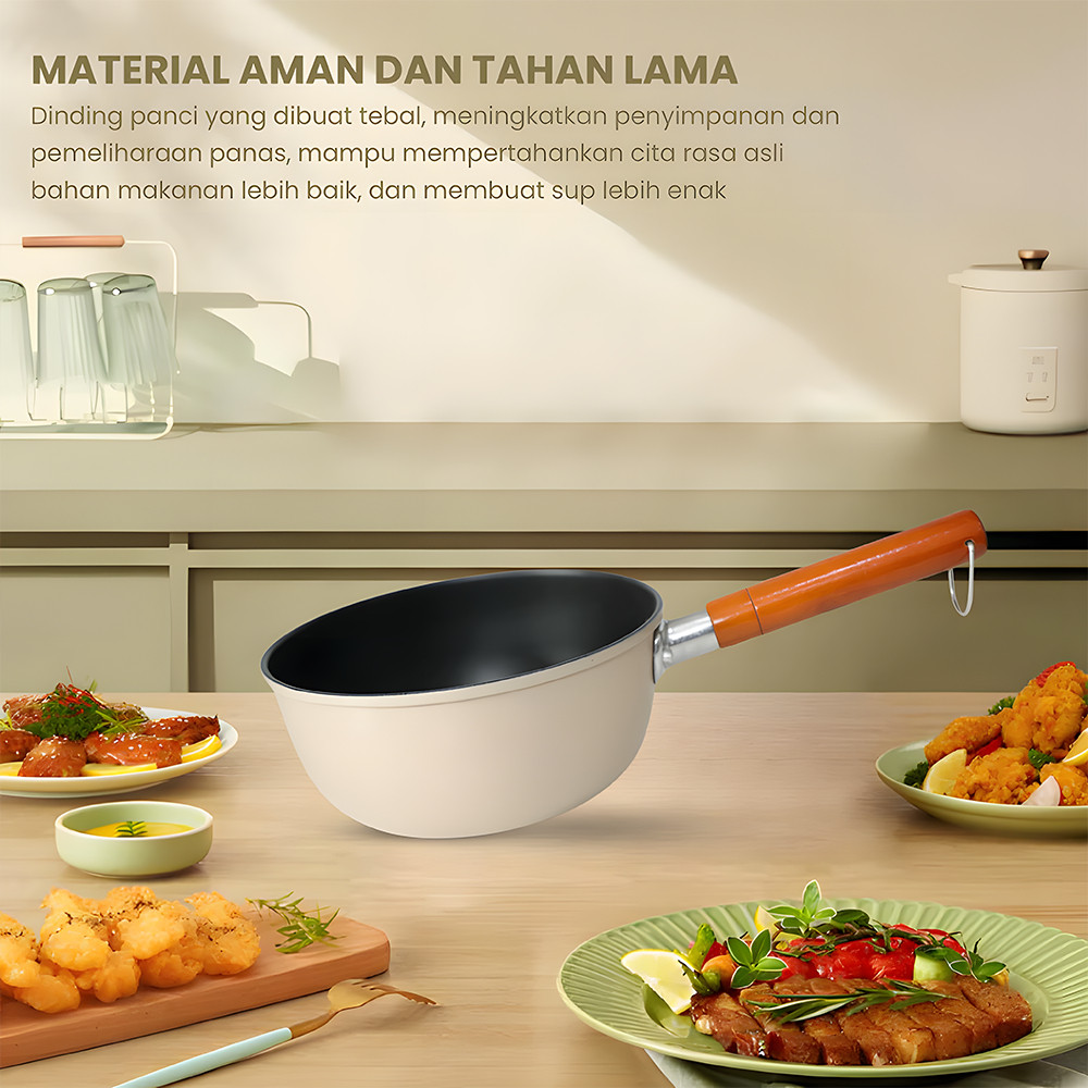Panci Susu Marble anti lengket Gagang Kayu panci mpasi / Panci Mie / Milk Pot / Sauce Pan 18cm anti karat