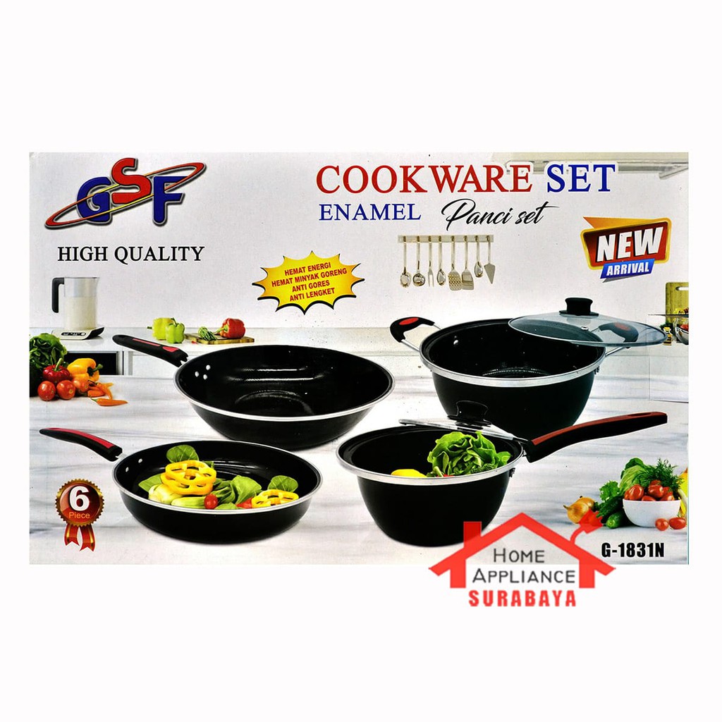 Panci Wajan Set Enamel GSF Cookware Set Tutup Kaca GSF-1831 / GSF1831 / G-1831 N / G 1831 N / G1831N