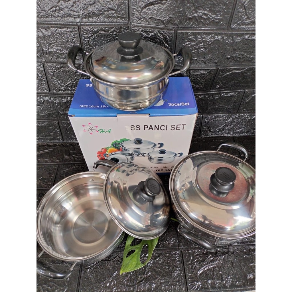 Panci set stainless 3 in 1 kuping / panci set stainless / panci stainless steel