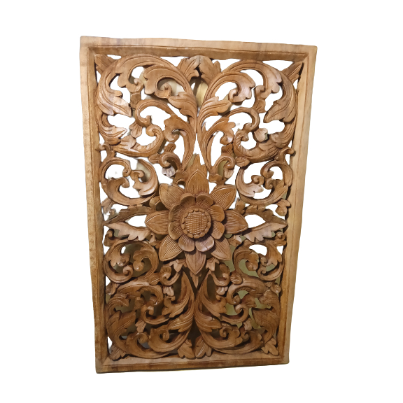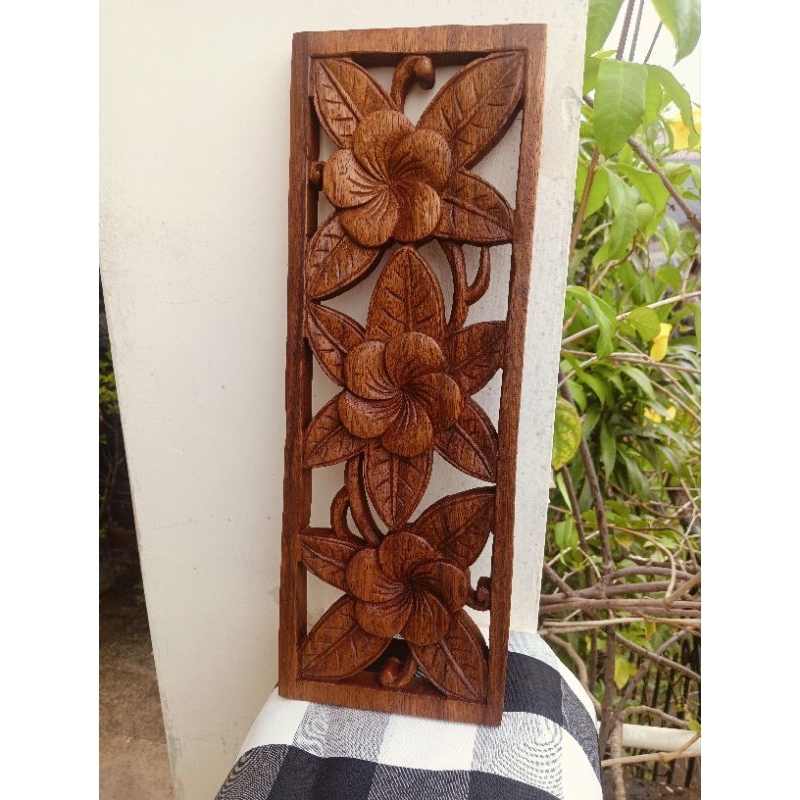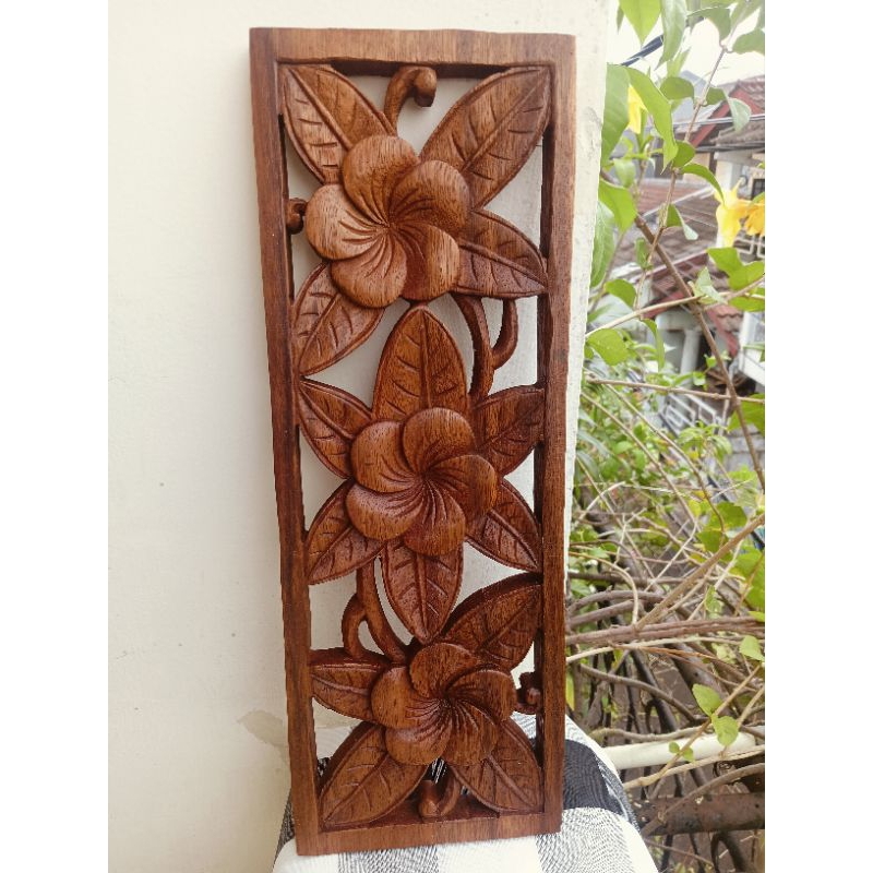Pandil Relief Relif 3D Kayu Cokelat Bunga | Dekorasi Dinding Rumah | Pajangan Ventilasi Pintu | Kerajinan Tangan Khas Bali