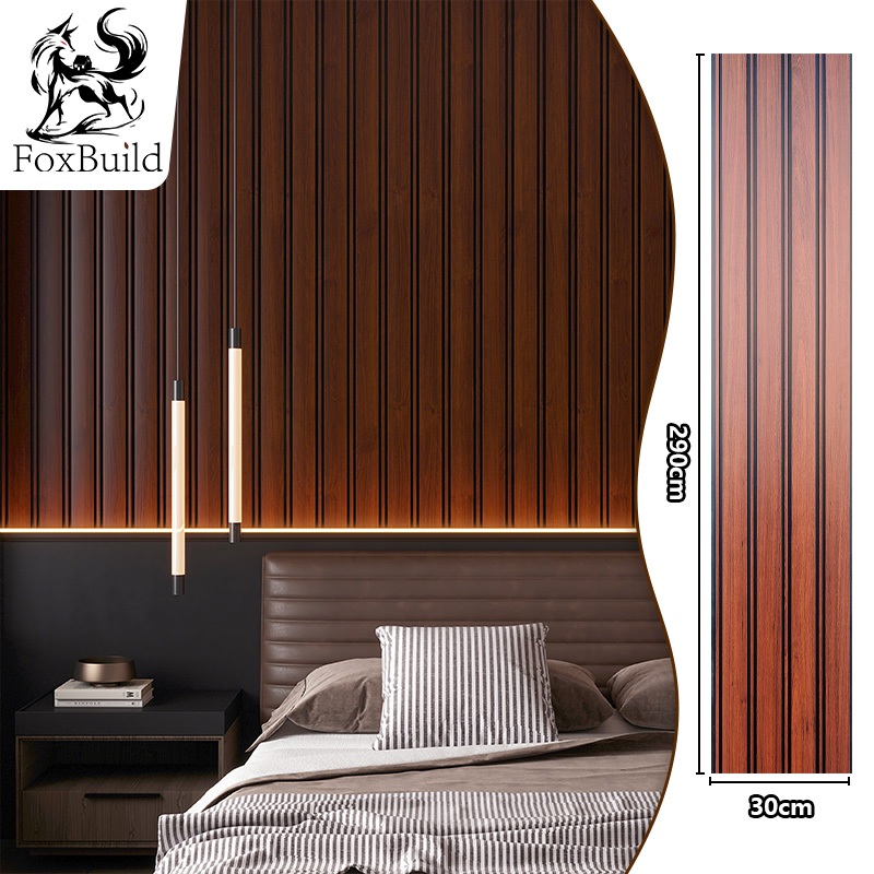 Panel Dinding Kayu Dekoratif Bahan Komposit Echo Wood Premium Ukuran 30x1cm Panjang 2.9 Meter untuk Dekorasi Interior Rumah Mewah Tahan Lama Minimalis Modern