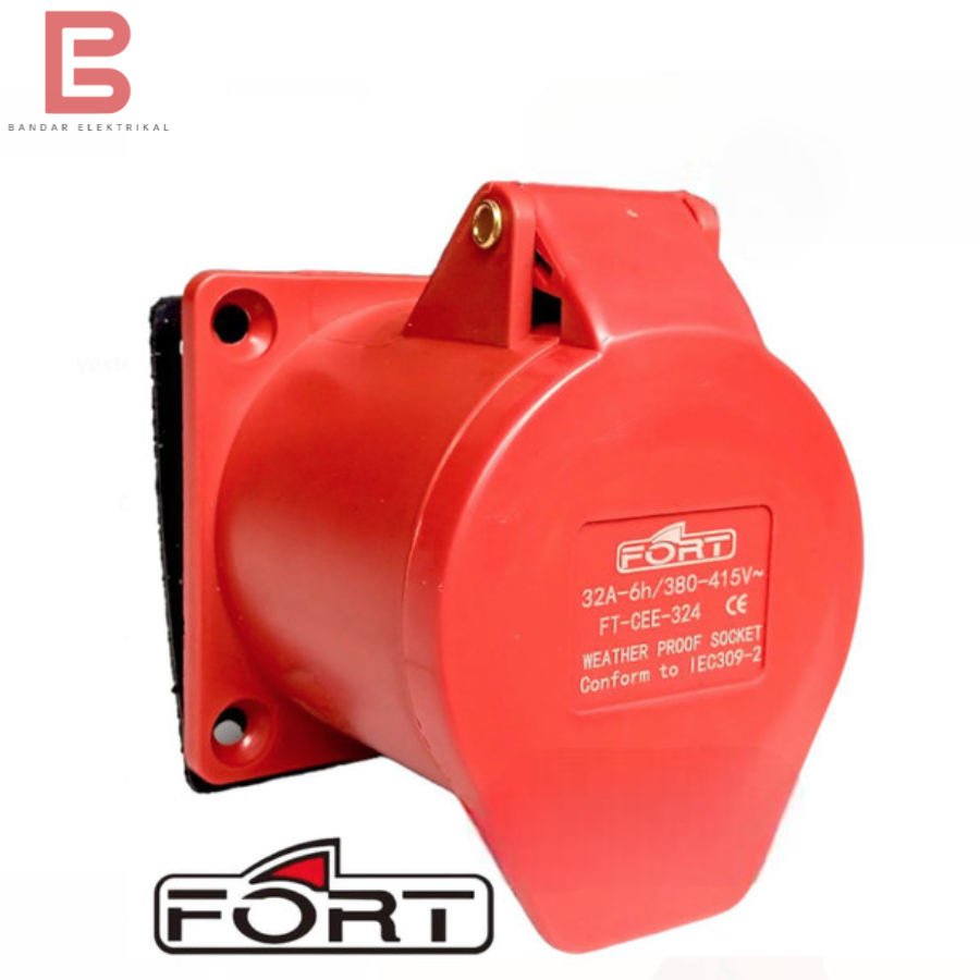 Panel Socket Mounting 4 Pin 32A / Panel Socket 4 Pole 324 IP44 Fort