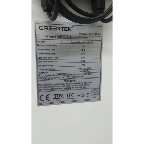 Panel Surya (Solar Cell) Greentek 120WP Monokristalin 12 volt