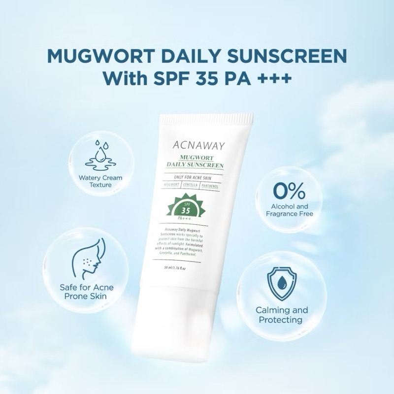 ACNAWAY Mugwort Gel Mask Anti Pores | Water Gel / Daily Moisturizer Acne Skin Repair | Gel Facial Wash Acne Face and Body Spray | 3 in 1 Acne Sun Serum Sunscreen SPF 50+ PA+++ | Stubborn Acne Cream Krim Jerawat Acne Spot Treatment | Acne Patch Infinity