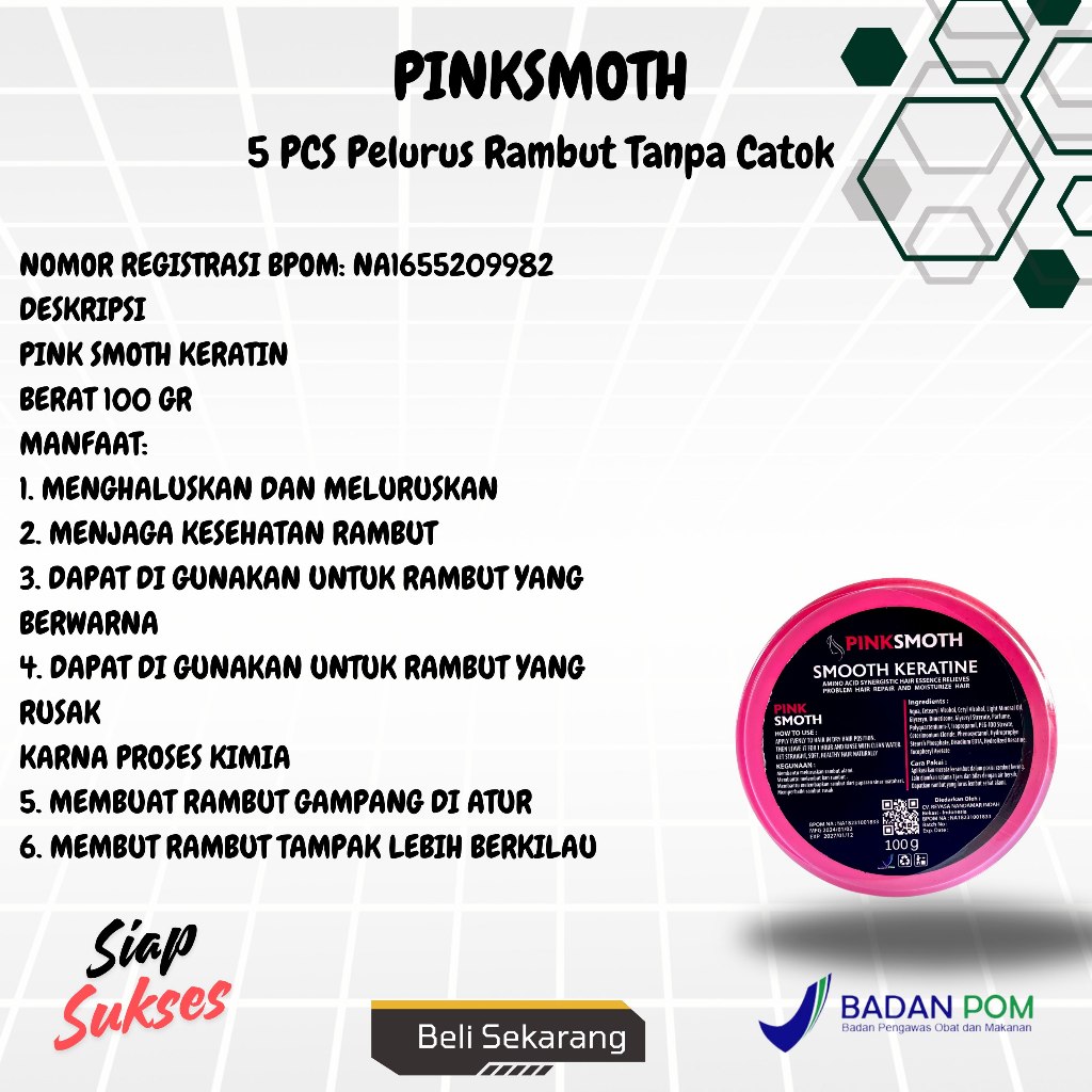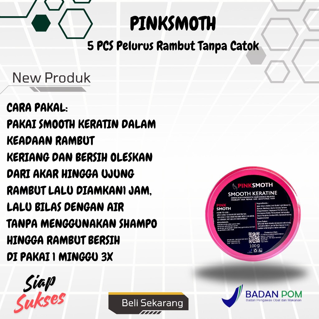 Paket isi 5 Pinksmoot Kecil Karatine Smooth Rambut Lembut Wangi Lurus Dan Mudah Diatur 100 gr BPOM