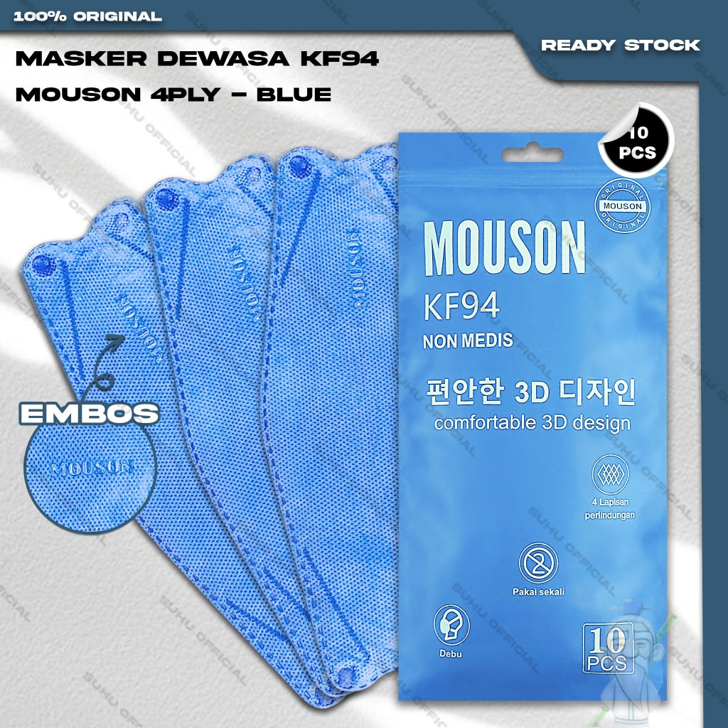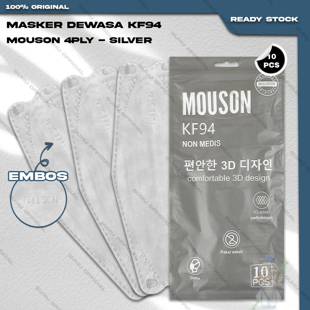 Masker KF94 CAREION 4Ply isi 10Pcs KF 94 Putih Hitam Abu Warna Earloop Surgical Mask Kemenkes