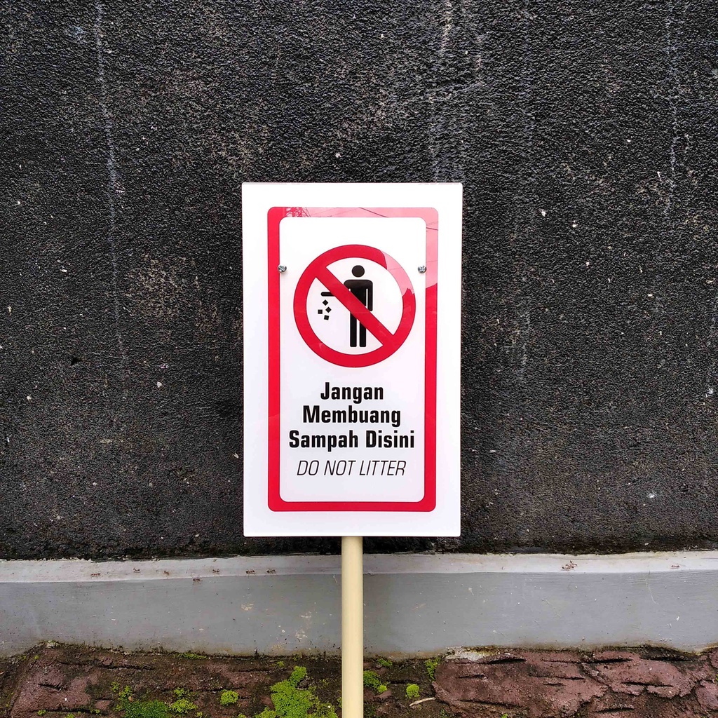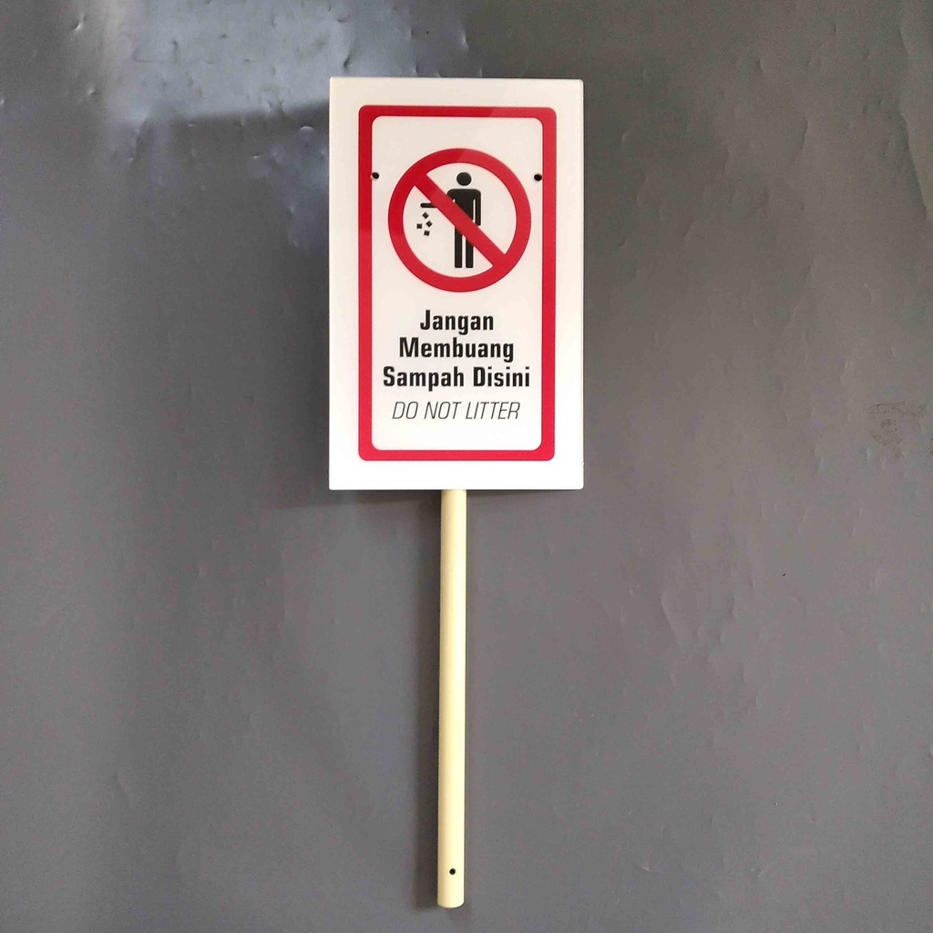 Papan Akrilik Larangan Buang Sampah , Rambu Dilarang Buang Sampah
