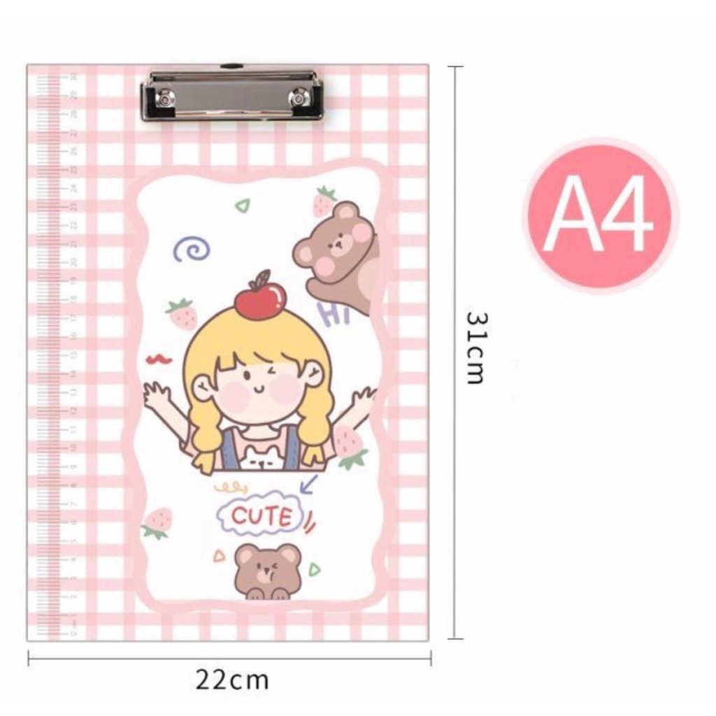 Papan / Alas Tulis Kartun A4 Klip / Klip Karton / Papan Ujian Motif