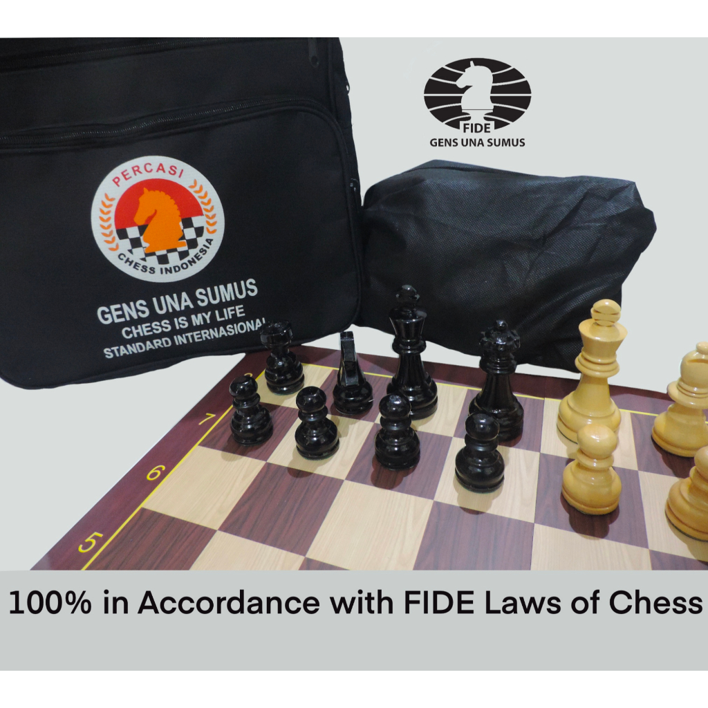 Papan Catur Lipat size 51 cm + Bidak Catur Kayu Std Internasional + Tas Catur