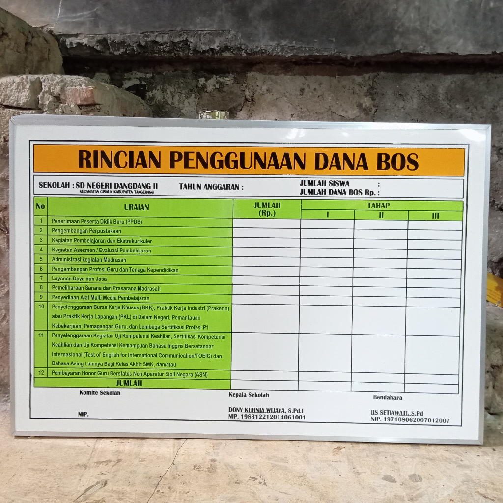 Papan Data Realisasi Penggunaan Dana BOS / Pengumuman Program BOS