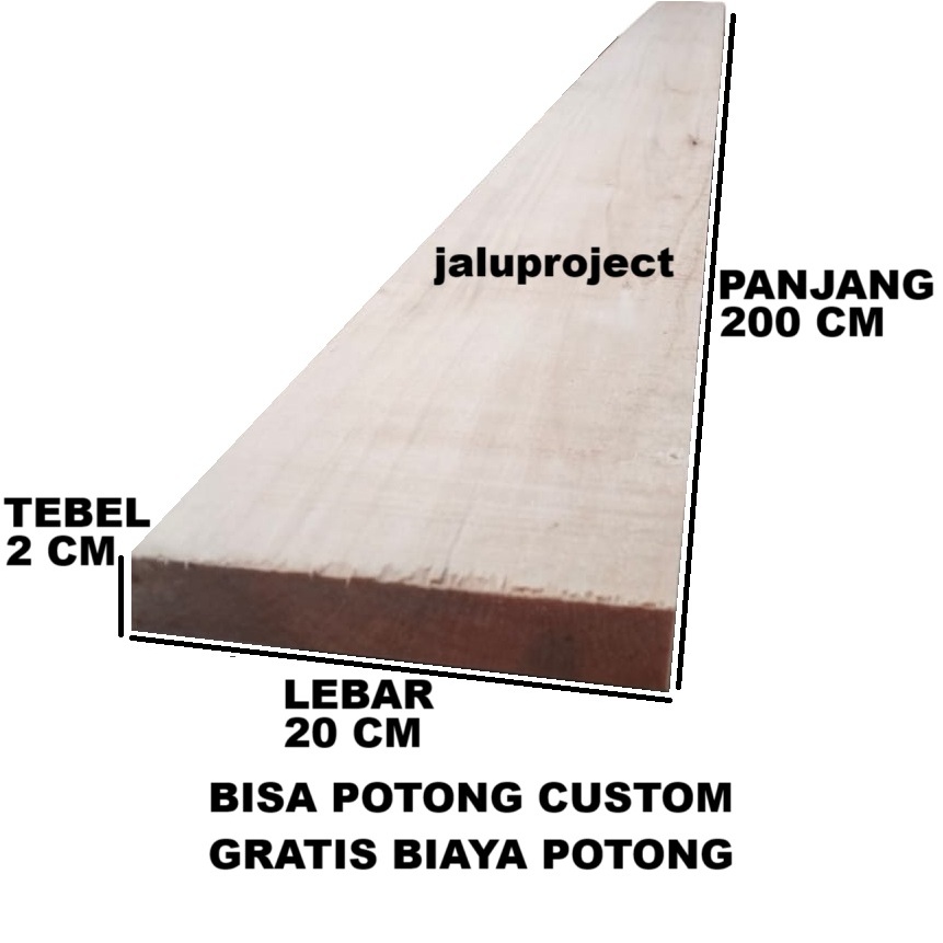 Papan Kayu Jati Belanda Pinus Mahoni Lebar 20cm Ukuran 2 x 20 cm Panjang 2 Meter Tanpa Sambungan Baru Bukan Bekas