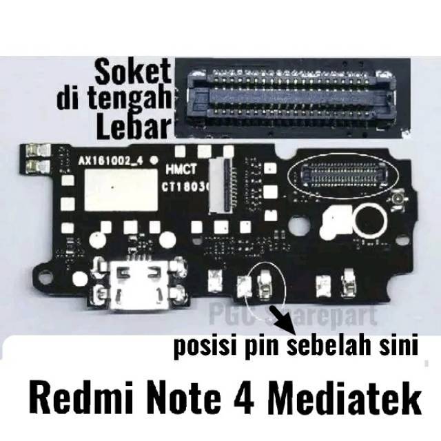 Papan Konektor Cas + MIC Redmi Note 4 Mediatek MTK - Soket Lebar dan Kaki PIN PER di kanan - Xiaomi Flexible Fleksibel fleksible Connector PCB Charger Charge