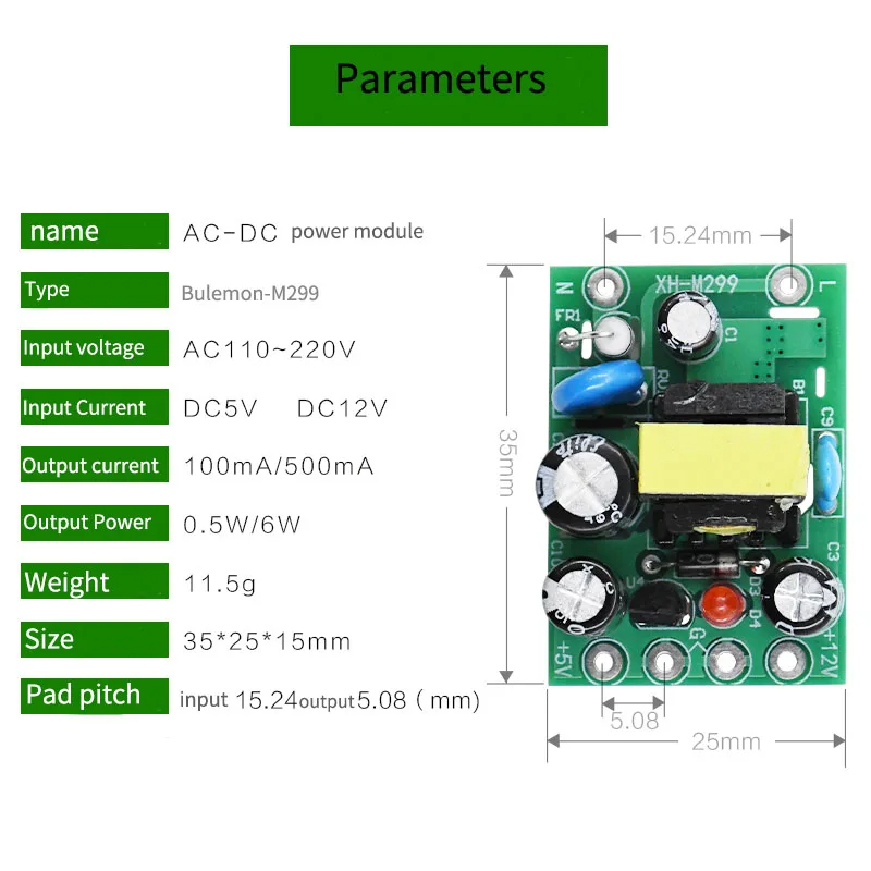 Papan Modul Konverter Mini AC110V- 220V Ke DC 12V0.5A+5V