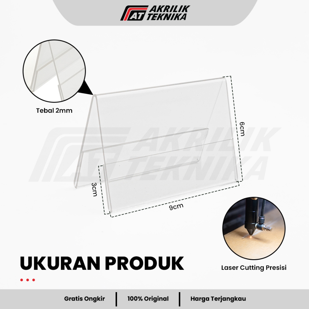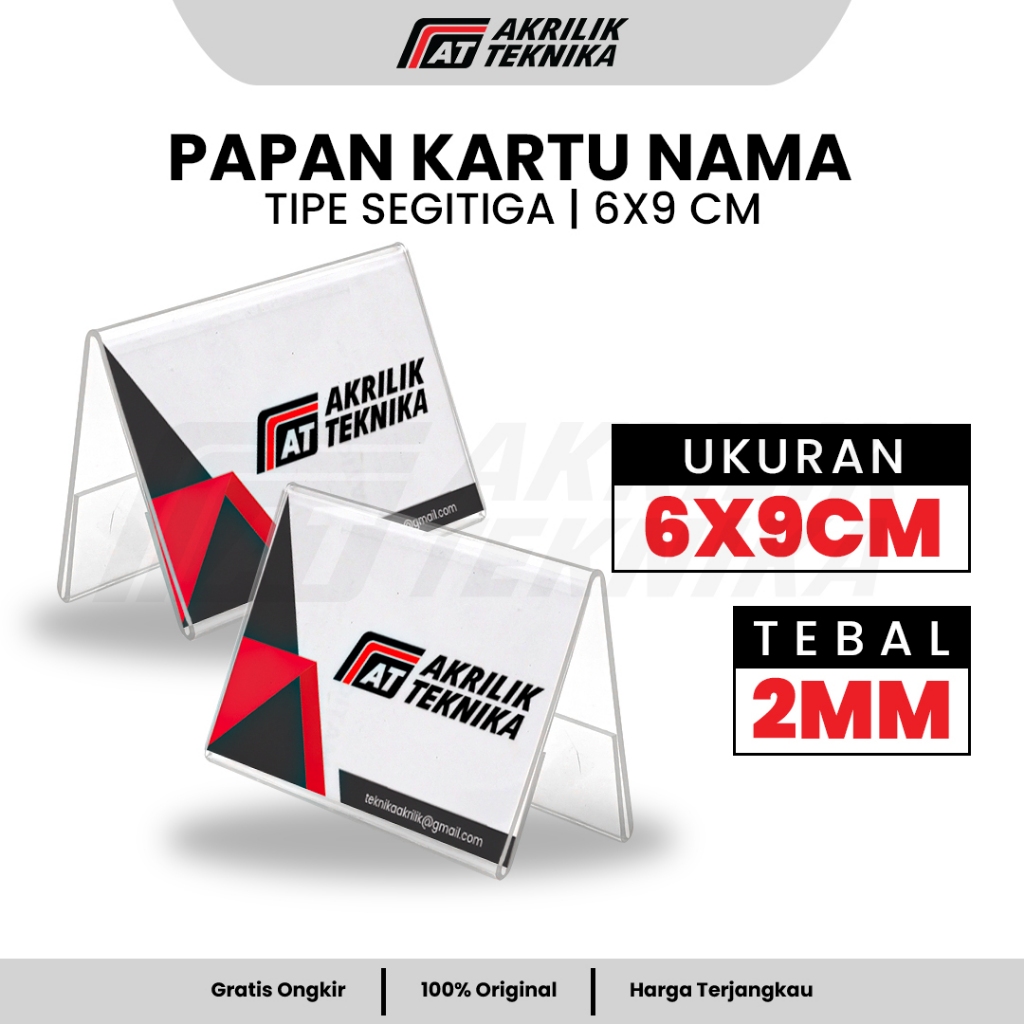 Papan Nama Akrilik Stand Display Meja Kantor Bisnis Kartu Name Tag Segitiga - Ukuran 6x9cm