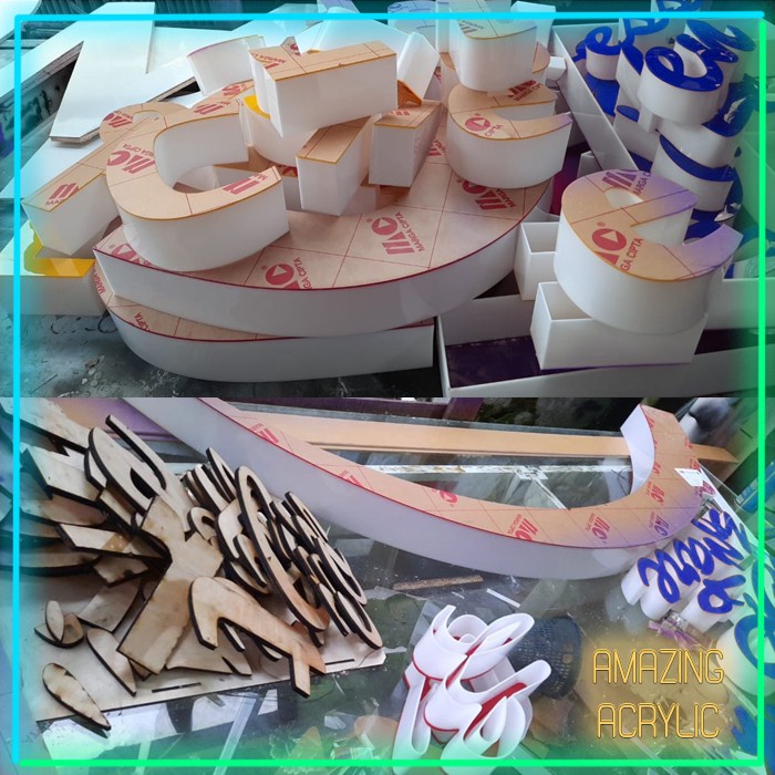Papan Nama Huruf Logo Akrilik Timbul LED/ Hiasan Dinding Akrilik