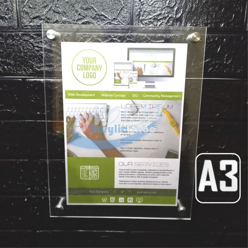 Papan Poster akrilik display poster dinding acrilic ukuran A3 A4
