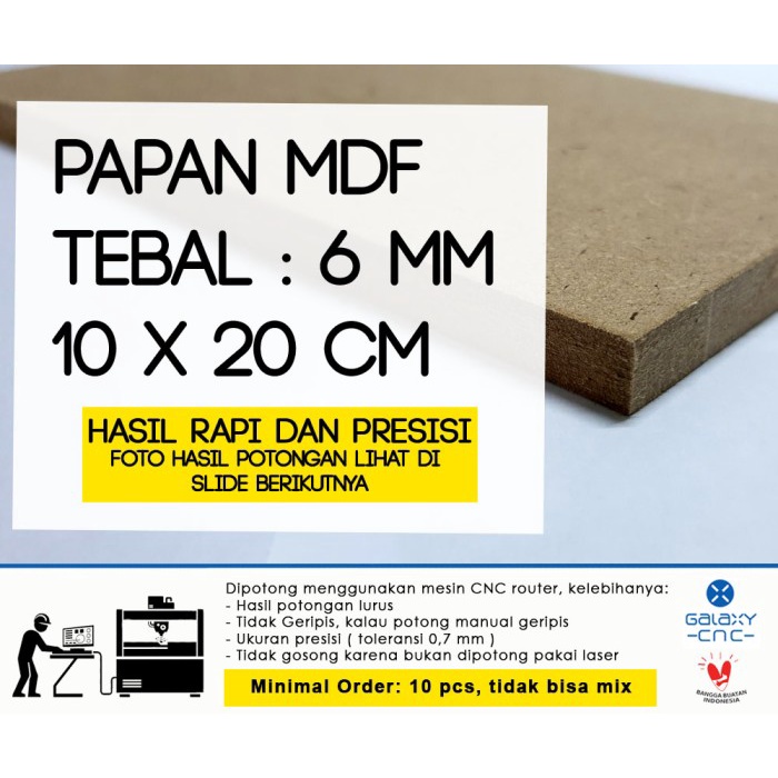 Papan kayu MDF kotak tebal 6 mm ukuran 10 cm x 20 cm