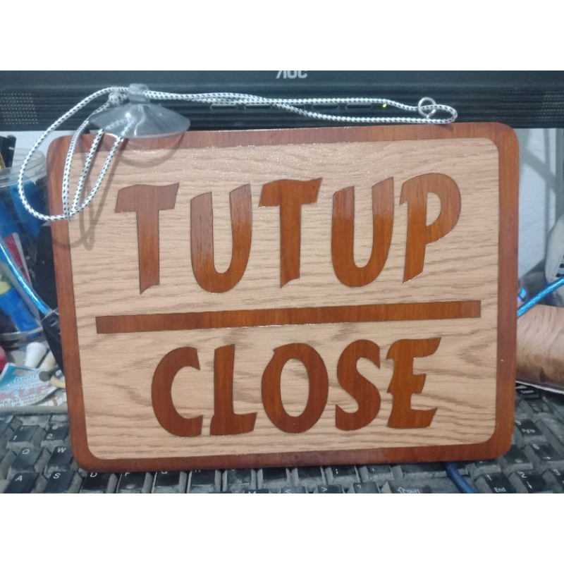 Papan tanda sign buka tutup open close kayu