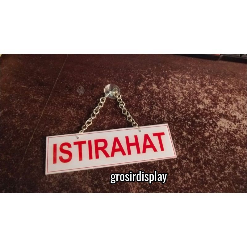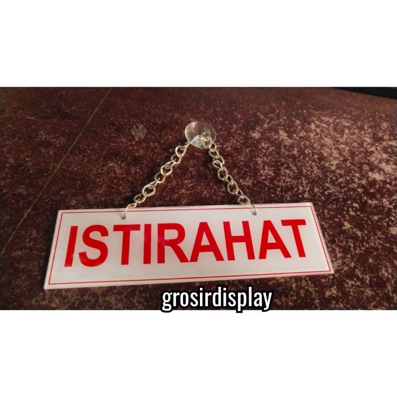 Papan tulisan istirahat / gantungan tulisan istirahat papan plat akrilik stiker tempel murah