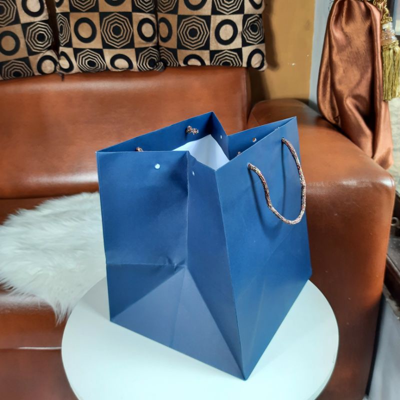 Paper Bag Biru Polos 25,5 x 22 x 26 cm Tas Kado Hampers Simple Paperbag Pembungkus Dus Makanan