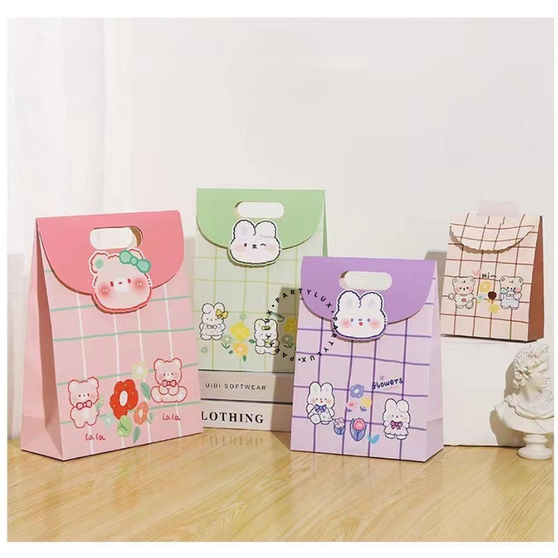 Paper Bag Kado Aesthetic Tutup Motif Karakter Lucu / Goodie Bag Ulang Tahun / Tas Kado Lucu Pastel