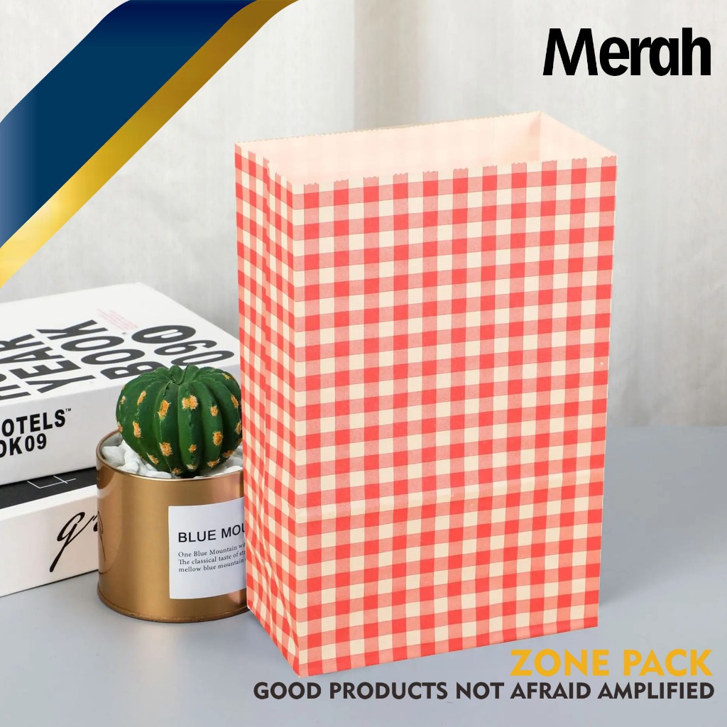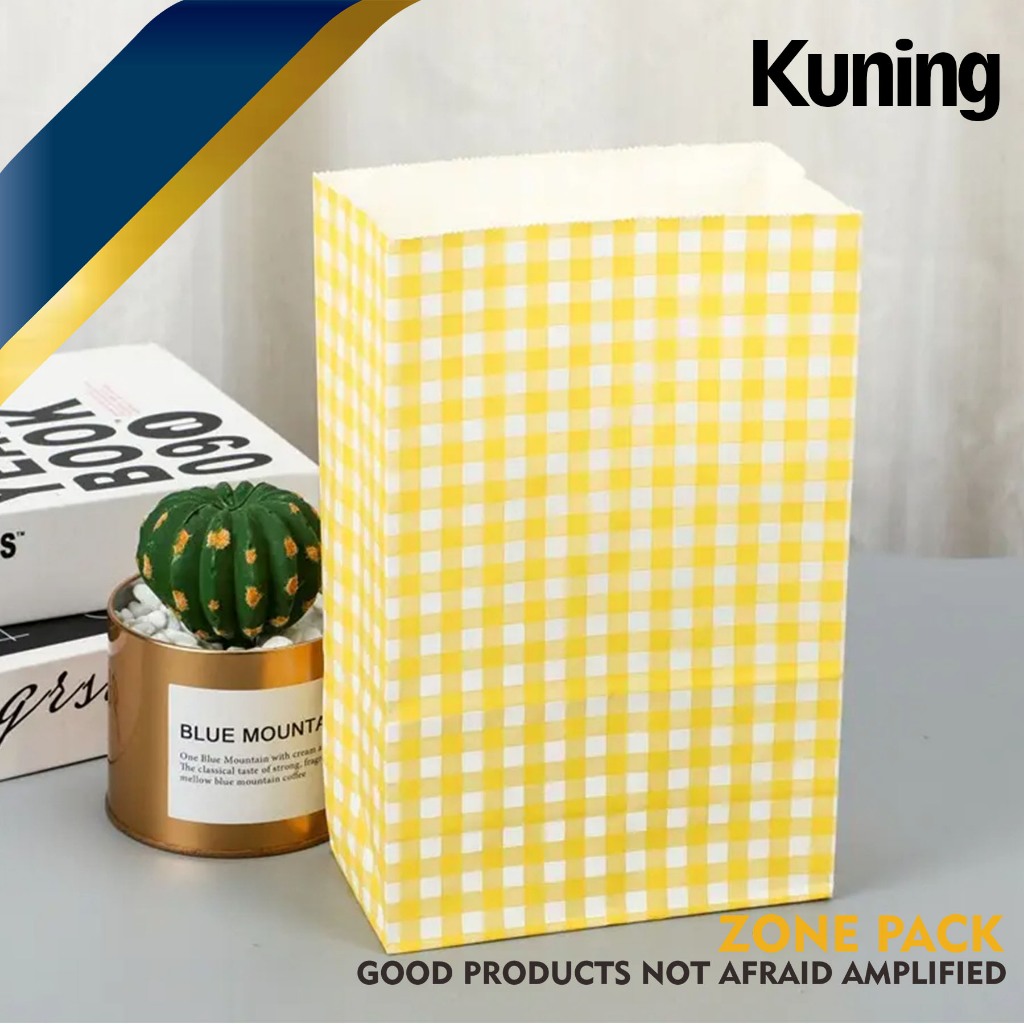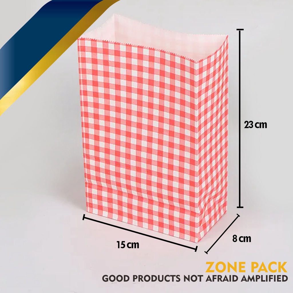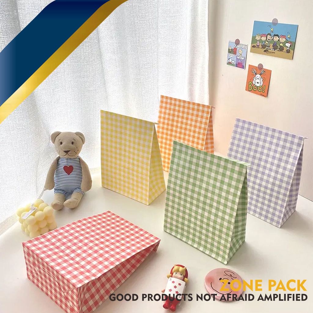 Paper Bag Pembungkus Kue Kering| Paper Bag Colorful | Kantong Kertas Serbaguna Motif Kotak Berwarna | Kantong Kertas Roti