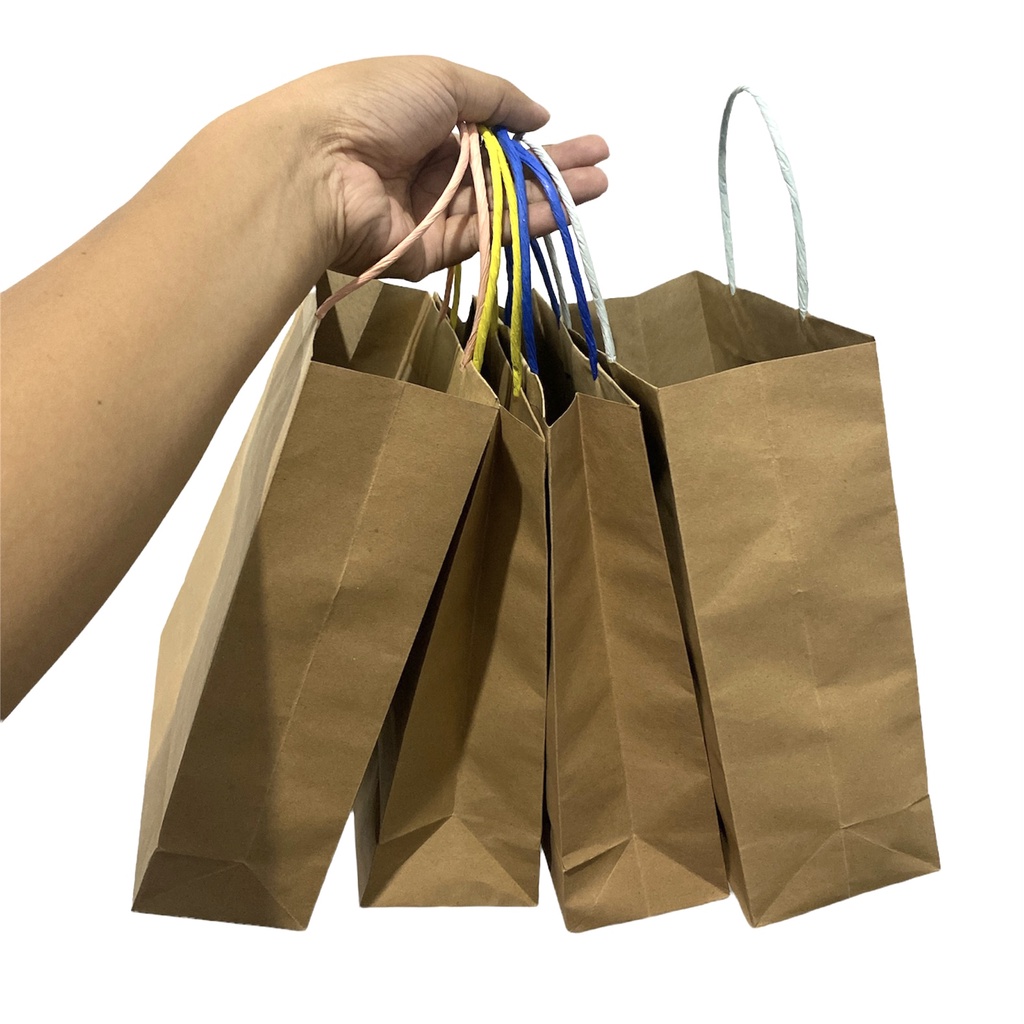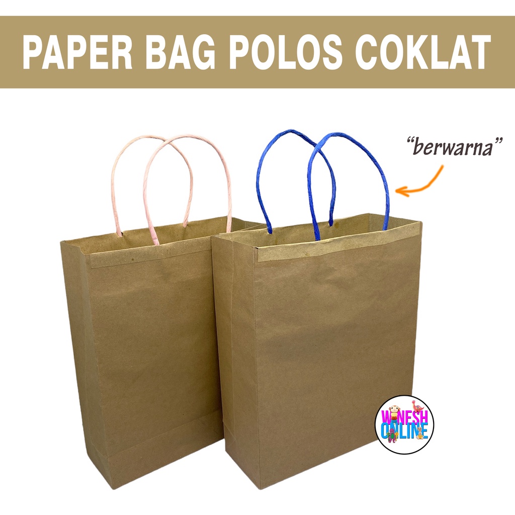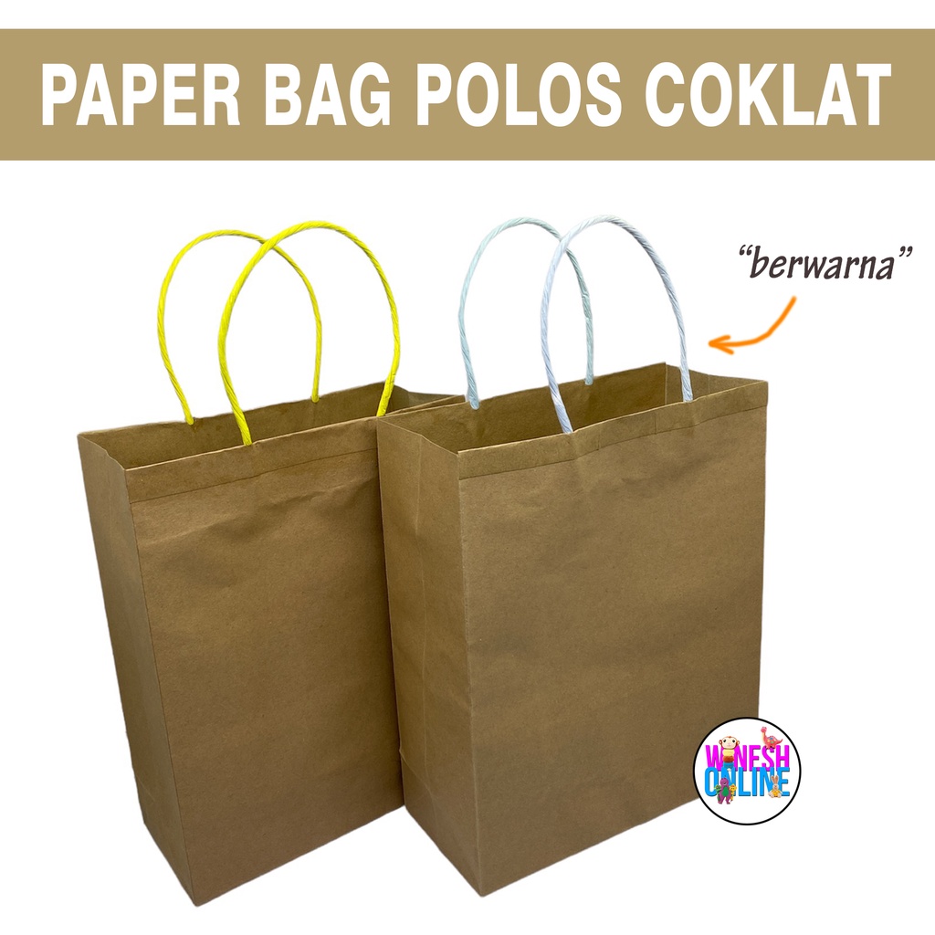 Paper Bag Polos Coklat tali warna / Tas Kertas Coklat Polos 1kg 30 Paper Bag
