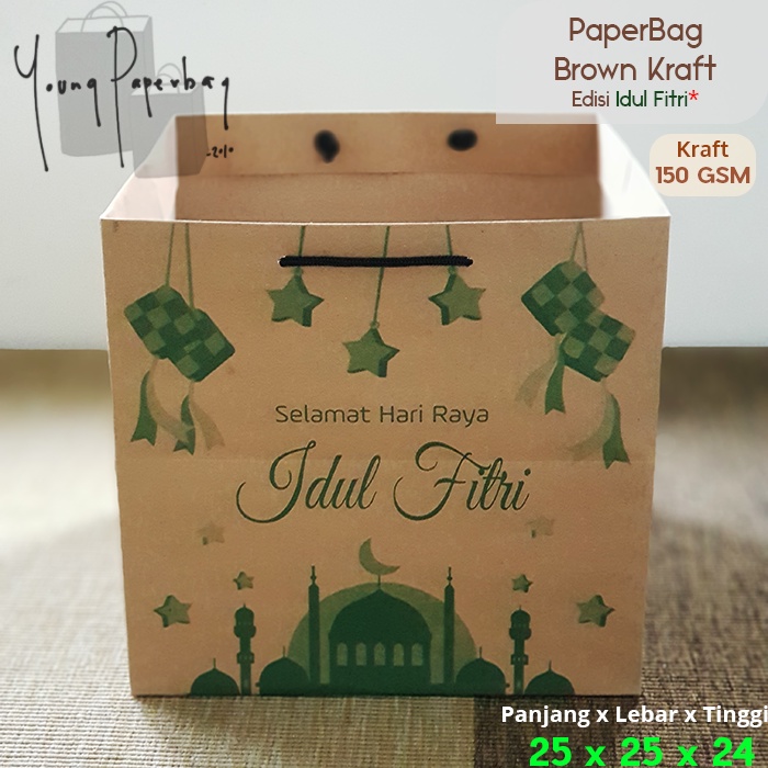 Paper Bag / Tas Kertas Idul Fitri Hampers Lebaran Uk. 25x25x24 Model Kotak Nasi Box (1 Lusin)