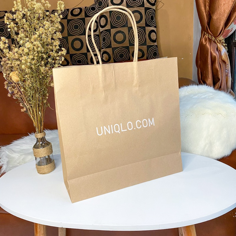 Paper Bag Uniqlo Original Store Terbaru Pembungkus Hadiah Baju Kekinian New Paperbag Kraft Coklat Ori