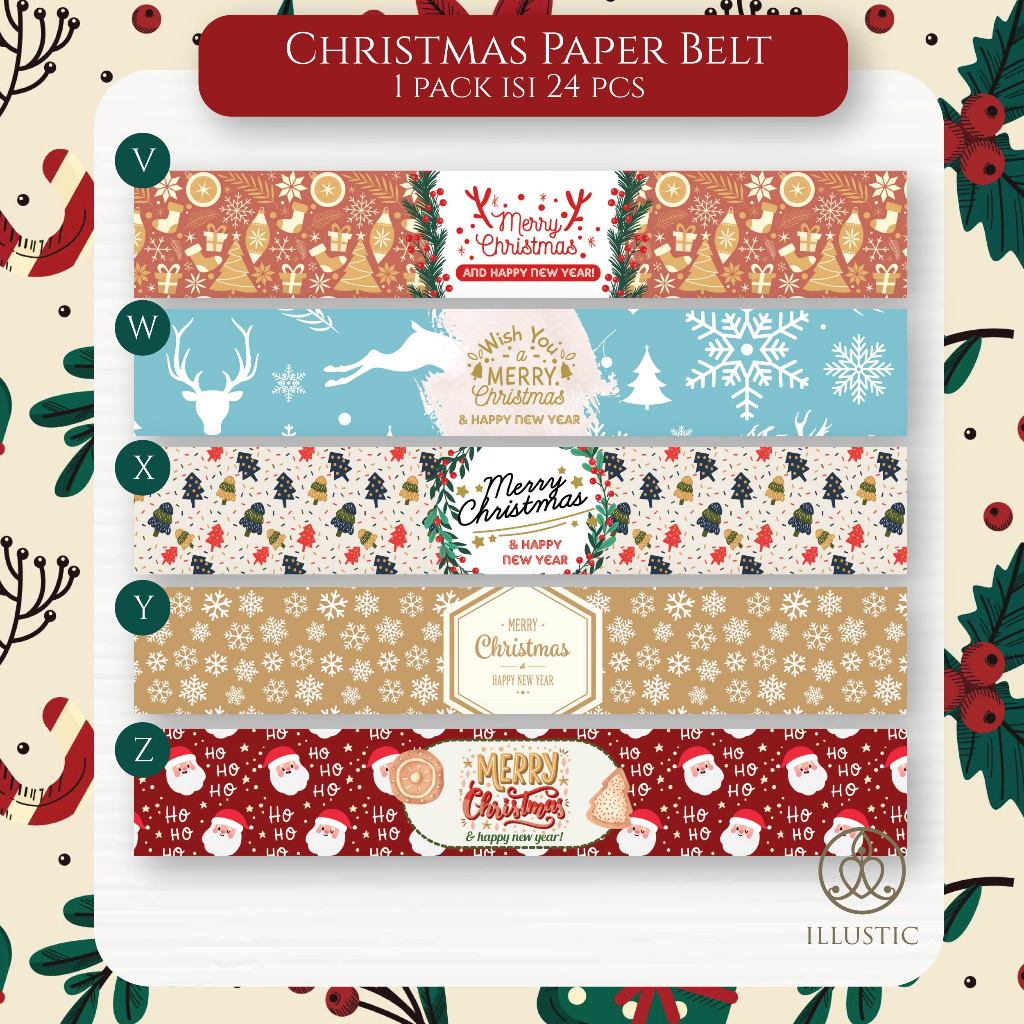 Paper Belt Christmas, Paper Belt Natal, Dekorasi Kue dan Hampers Natal (24 pcs)