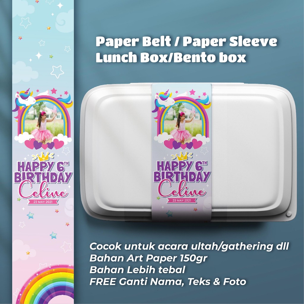 Paper Belt Lunchbox bento ultah FREE CUSTOM / Paper Sleeve / Label Nasi Kotak Ulangtahun - Baoo x Cloverart