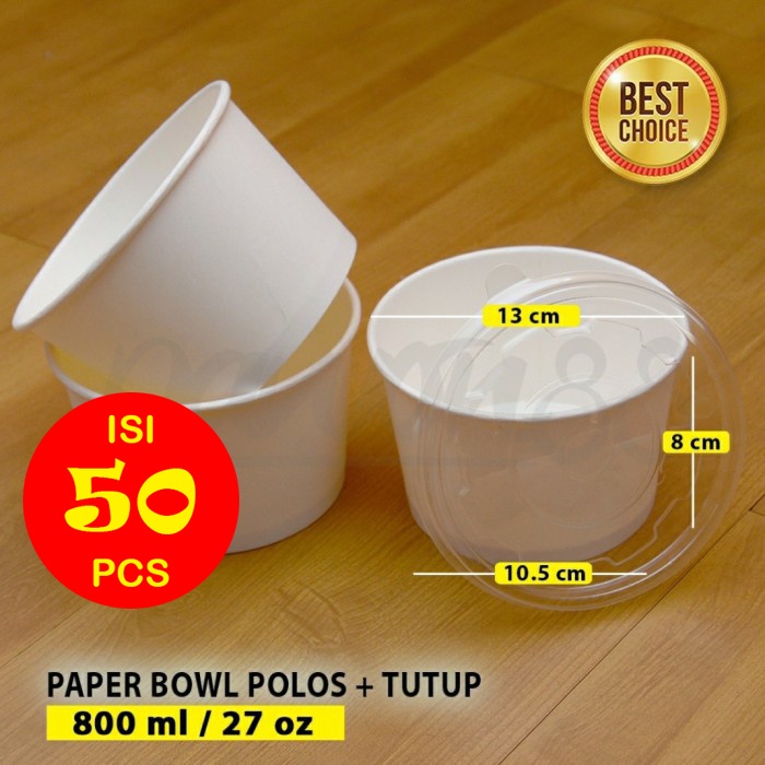 Paper Bowl 800 ml POLOS | + TUTUP - Murah - (50 Pcs)