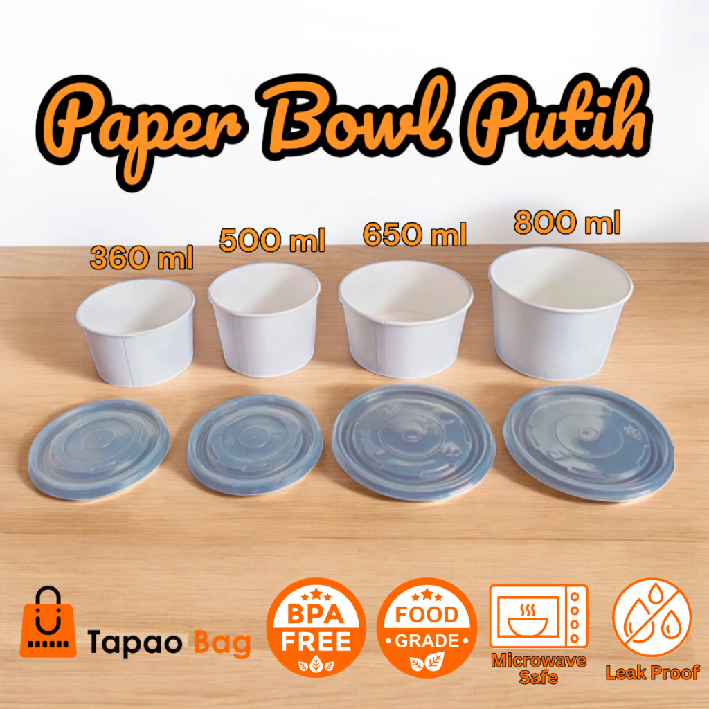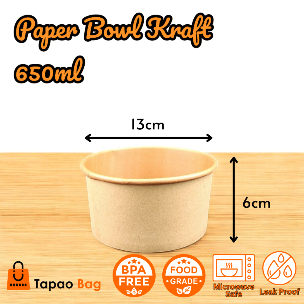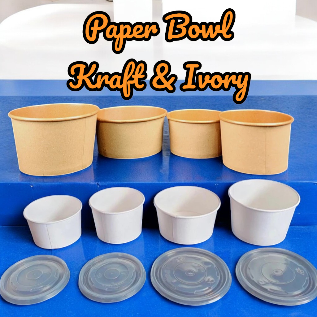 Paper Bowl Laminasi All Size | Paper Bowl Coklat | Paper Bowl Putih | Mangkok Kertas - Pack