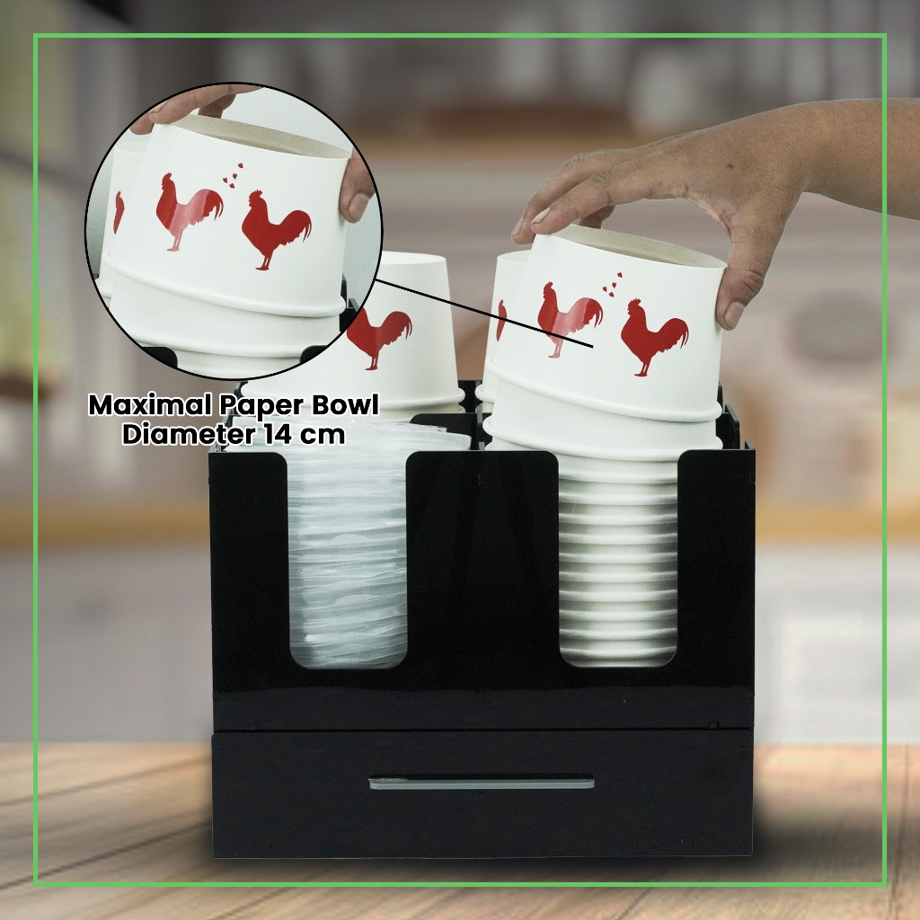 Paper Bowl / Paper Rice Bowl Organizer 4 Slot With Spoon Drawer