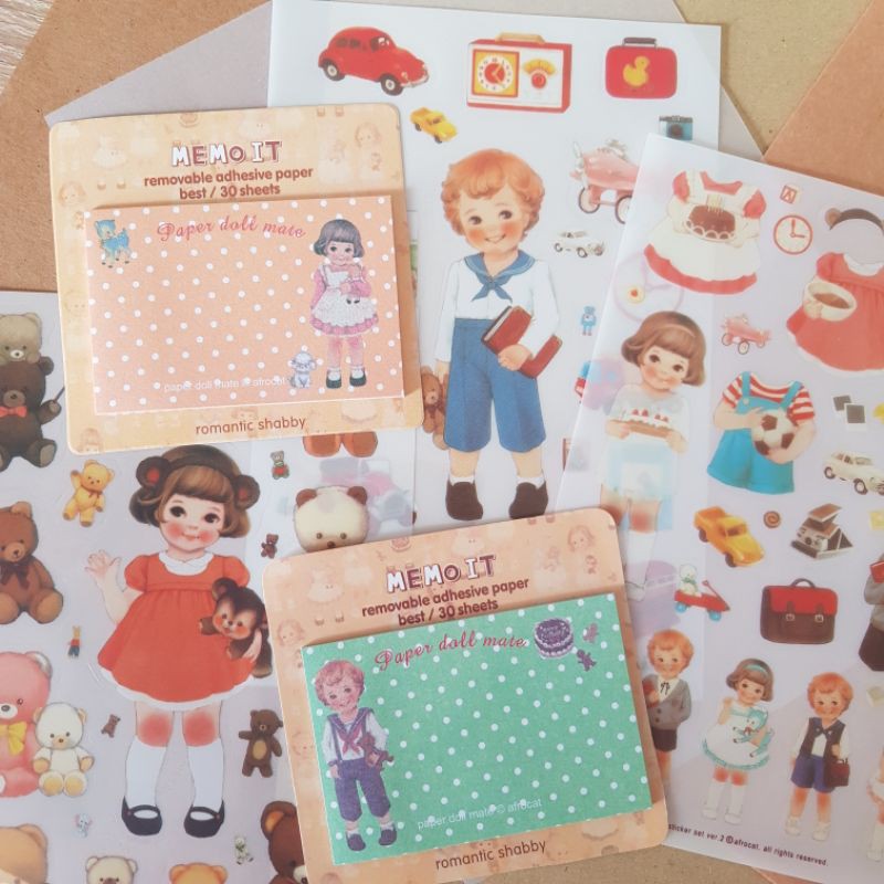 Paper Doll Pack Stickers + Sticky Notes / Stiker dan Sticky Notes gambar Boneka Lucu Cute DIY Jurnal