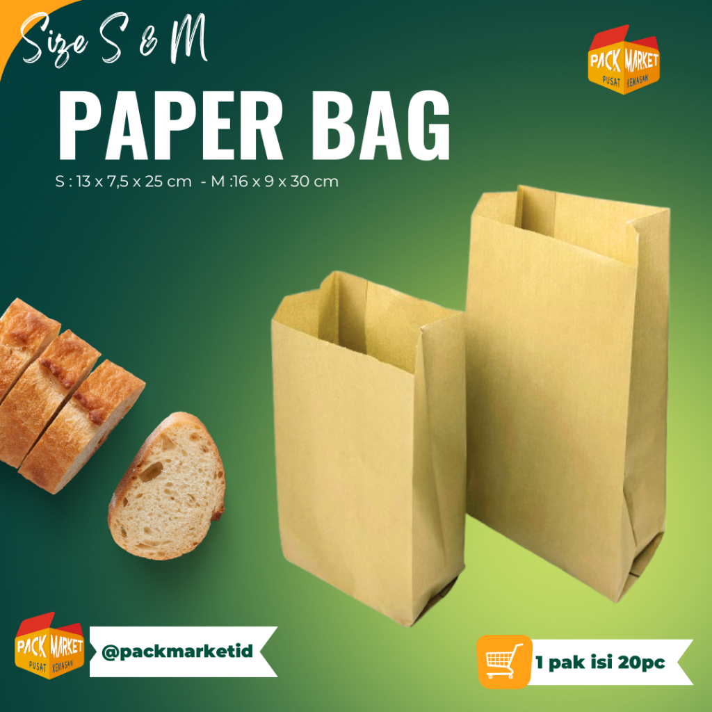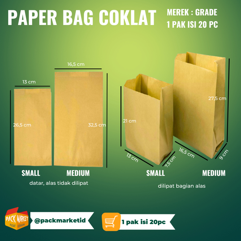 Paper Food Bag Coklat, Merek Grade - Ukuran Small & Medium - 1 pak isi 20pc