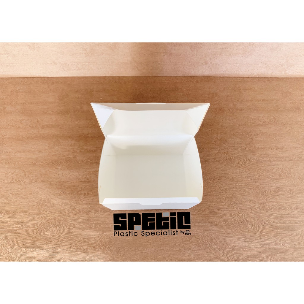 Paper Lunch Box 850ml Putih / Kotak Makan Kertas Putih Kecil / Kotak Nasi Putih / Kotak Mie Pangsit