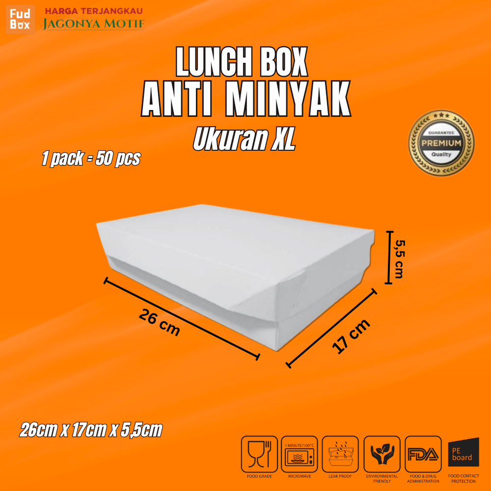 PAPER LUNCH BOX/DUS NASI POLOS ANTI MINYAK FOOD GRADE UKURAN M, L, XL, XXL