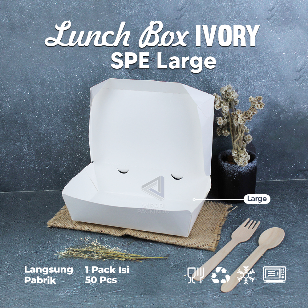 Paper Lunch Box Putih Laminasi All Size Siap Pakai Ivory Food Grade / Rice Box Takeaway / Kotak Makan Kertas