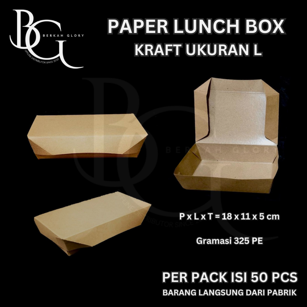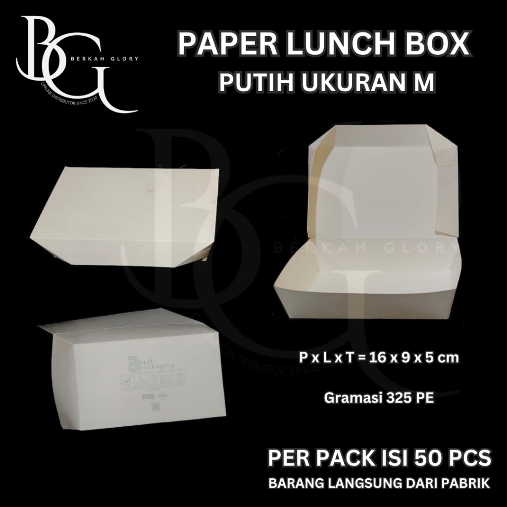 Paper Lunch Box Warna Putih dan Kraft isi 50 pcs / kertas take away / kotak makan / dus nasi