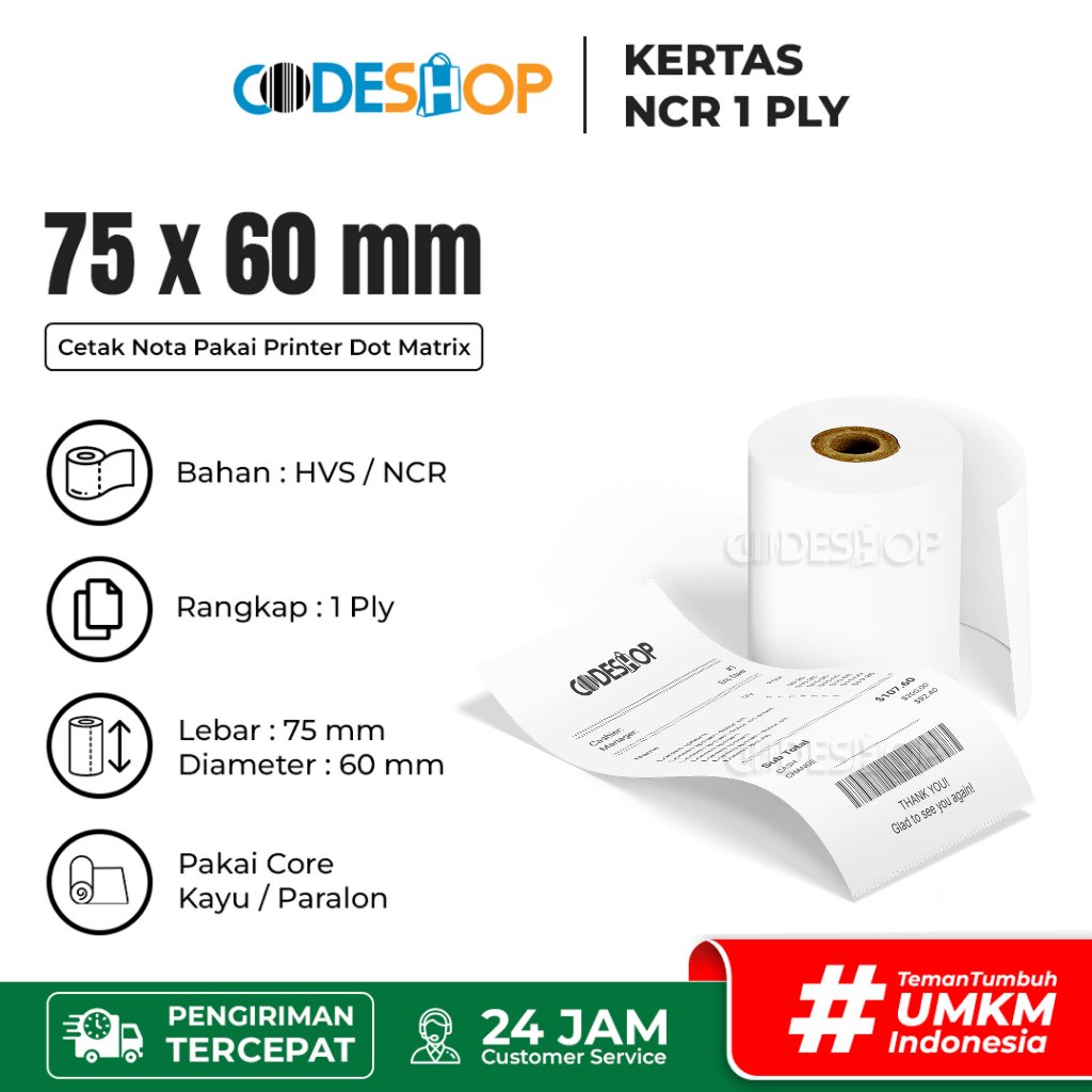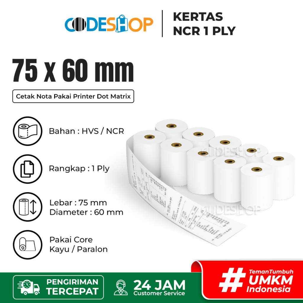 Paper Roll NCR 1 ply 75x60 Kertas Dot Matrix Printer