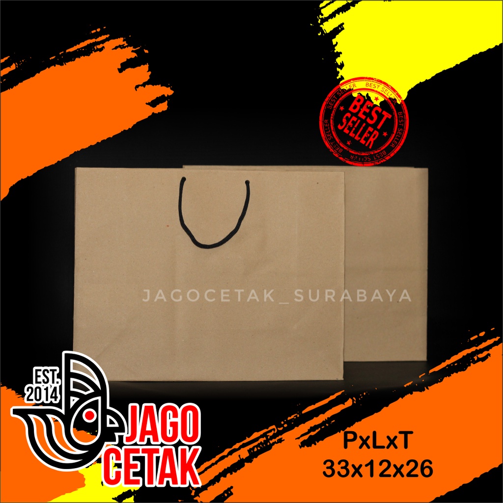 Paper bag 33x12x26 coklat tebal paperbag craf paper bag