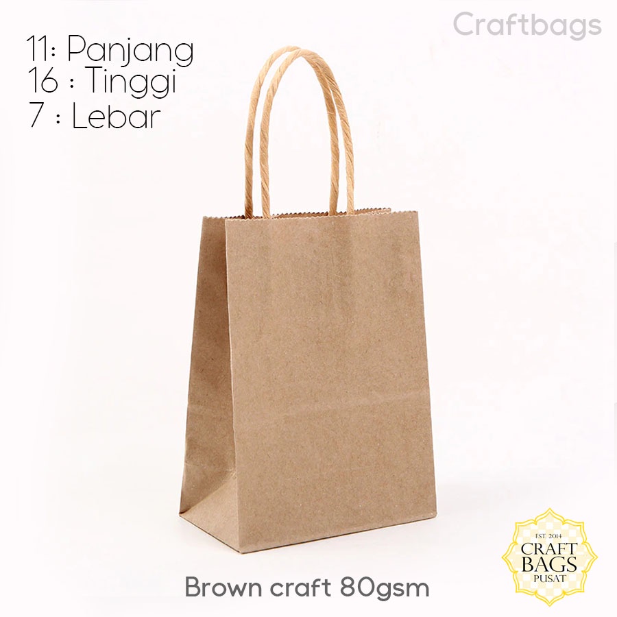 Paper bag coklat mini 16x7x11 CM / Paper bag kado souvenir wedding packing olshop / Papper bag kertas warna coklat tali kertas / Paperbag packaging online shop