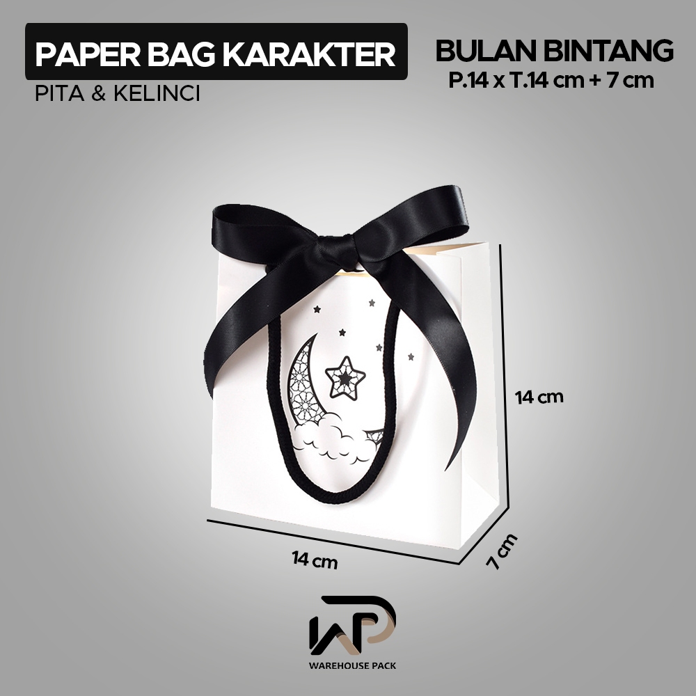 Paper Bag Hitam Putih | Tas Kado Putih Pita | Tas Gift Souvenir Bulan Bintang | Paper Bag Putih Winnie The Pooh