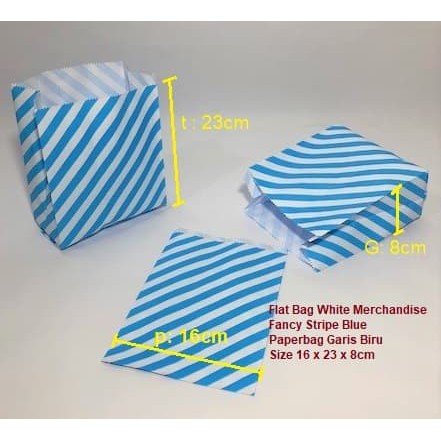 Paperbag Flat Kantong Kertas Warna Biru Laut Garis (L) Souvenir