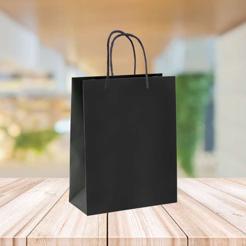 Paperbag Hitam Sablon Ukuran 20x10x25 / Paperbag Sablon Hitam / Paperbag R7 Hitam / Tas Kertas / Paperbag Sablon Custom