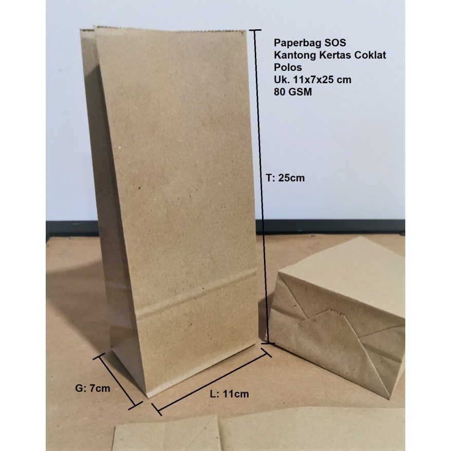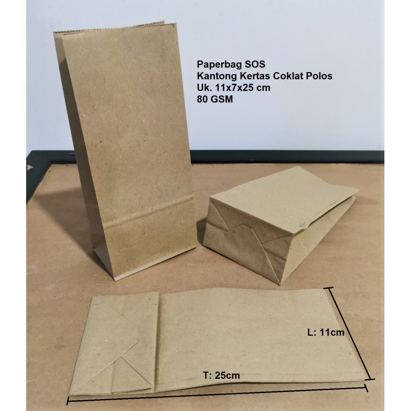 Paperbag Kantong Kertas SOS Polos 11x7x25cm 80 GSM Kertas Bungkus Makanan Packing Polos