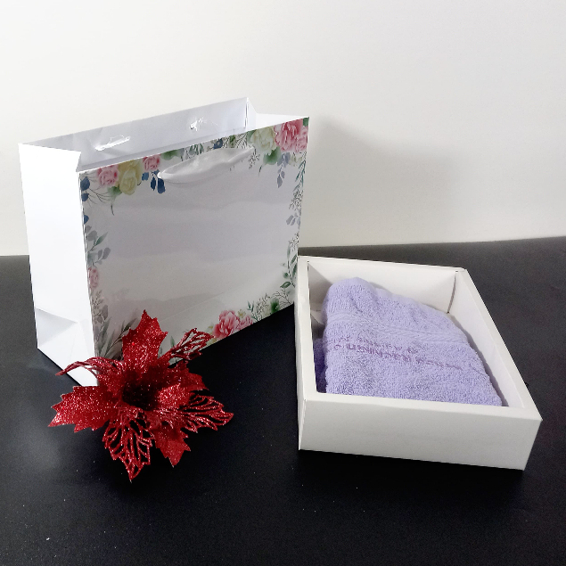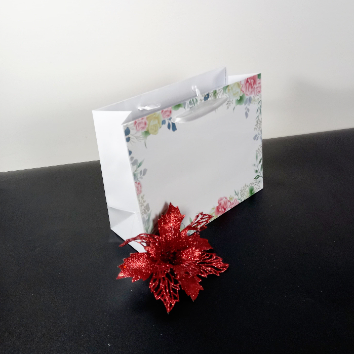Paperbag Putih Bunga Uk. 25 x 20 x 10 cm