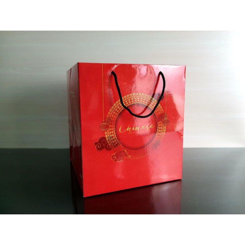 Paperbag Tema Imlek Merah Glossy 25x25x28 cm untuk Hantaran CNY